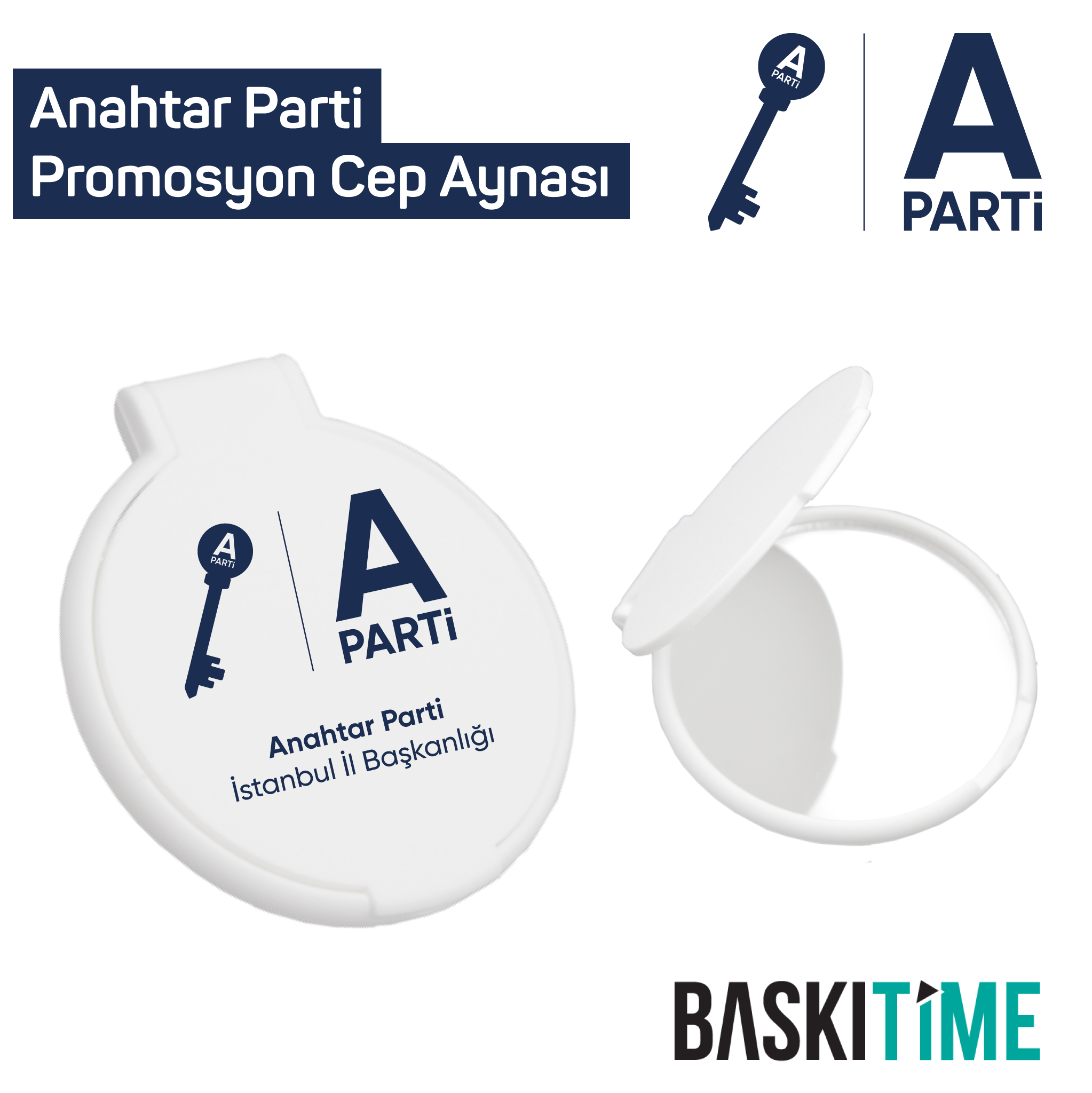 Hem zarif hem kullanışlı bir promosyon ürünüyle seçmeninizin cebinde yer alın! Anahtar A Parti logolu cep aynası, özellikle kadın seçmenlere hitap eden, günlük yaşamda sıkça kullanılan ve parti farkındalığını artıran şık bir tanıtım aracıdır.